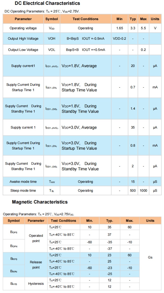 应用: (1)非接触式开关 (2)无绳手机提醒开关 (3)翻盖式手机屏保开关 (4)低占空比替代簧片管的磁传感开关
