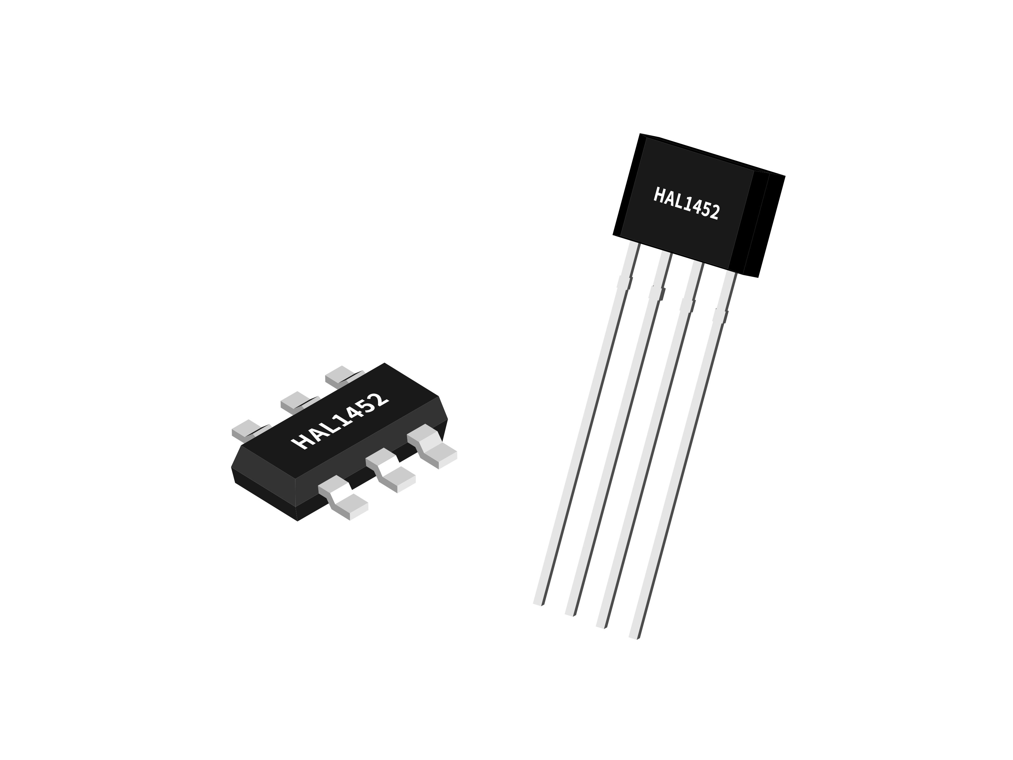 HAL1452这款IC有贴片型的SOT封装和可以直接插入的直插TO-94扁平型封装,这两款封装都符合RoHS标准。