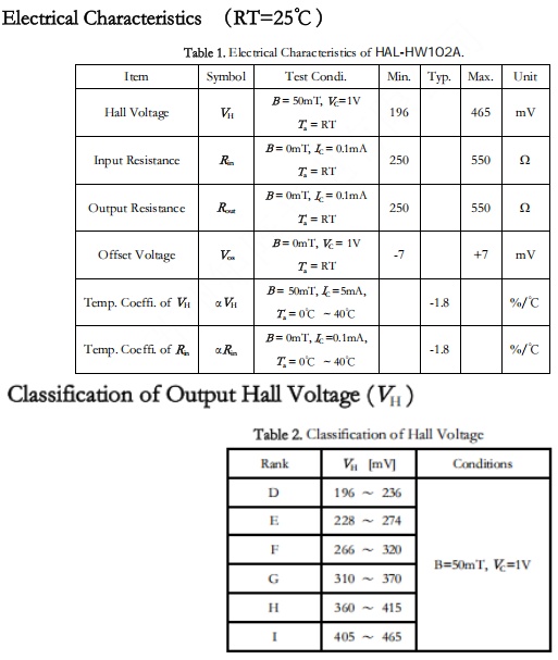 HAL-HW102A锑化铟霍尔元件也广泛的应用在电机位置检测:如电脑散热风扇,CD和DVD主轴电机,热水器电机,空调电机,洗衣机电机,冰箱电机,磁悬浮等等和磁场大小检测:如磁编码器,磁场检测仪,地磁检测仪器,电子指南针,测距仪等等。