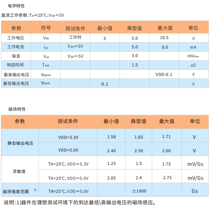 HAL496具有低噪声输出的特点,不需要采⽤外部滤波。可以在3.0V至10.5V的给电范围内稳定运⾏,5V下功耗仅为5mA,⼯作温度范围为-40℃至150℃。