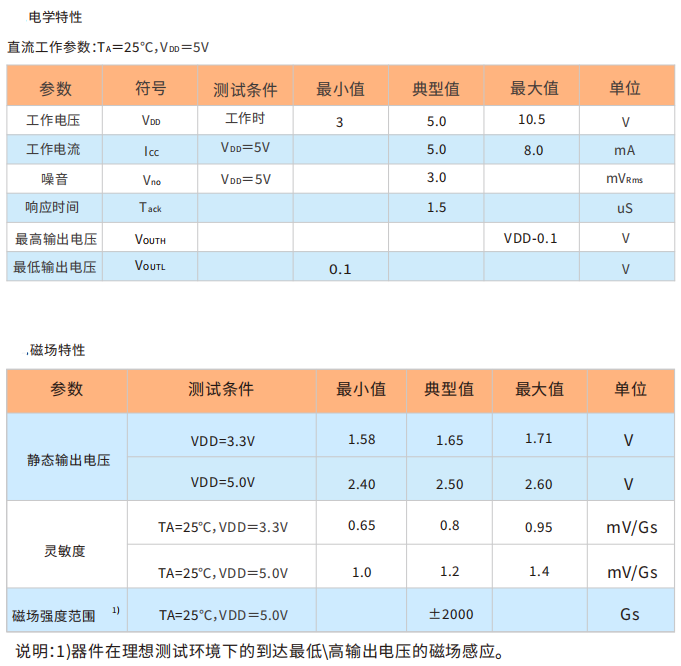HAL497具有低噪声输出的特点,不需要采⽤外部滤波。可以在3.0V至10.5V的给电范围内稳定运⾏,5V下功耗仅为5mA,⼯作温度范围为-40℃至150℃。